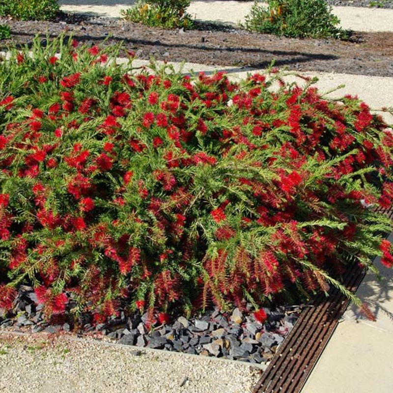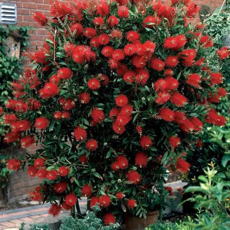 Bottle Brush Plants (Red Cascade) are evergreen shrubs that require minimal care and produce red flowers. They’re ideal as border plants, as hedging, or in a container.