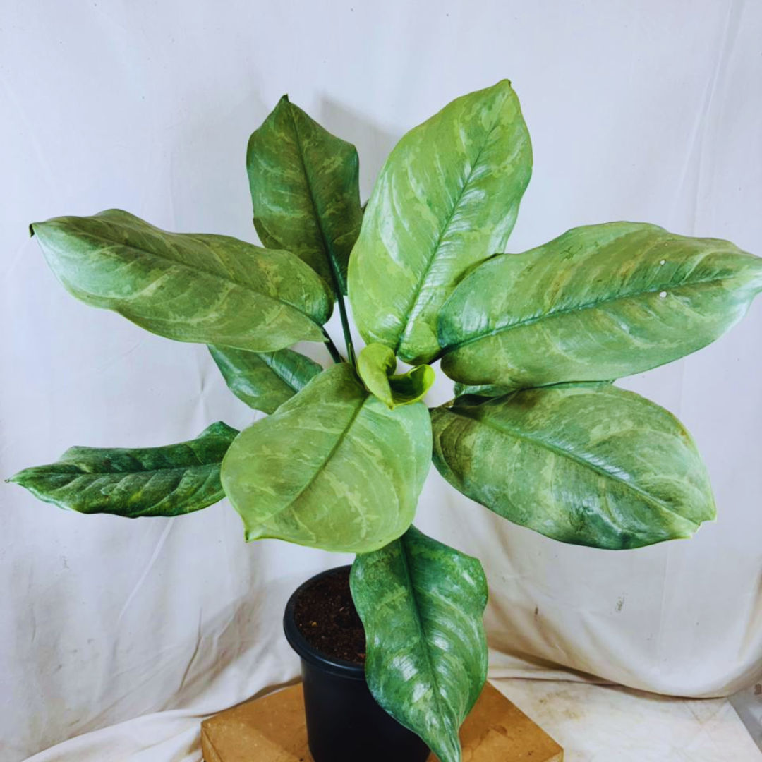 Dieffenbachia Silver Blue Steel is a stunning tropical foliage plant known for its large, glossy leaves with striking silver-blue patterns. Belonging to the Araceae family, this plant is native to Central and South America and thrives in warm, humid climates. It is primarily an indoor plant, making it perfect for homes, offices, and other interior spaces where it can add a touch of elegance. One of the special features of Dieffenbachia Silver Blue Steel is its ability to purify indoor air, creating a healthier living environment. With minimal maintenance, moderate watering, and indirect sunlight, this plant is ideal for both beginner and experienced plant lovers looking to elevate their indoor greenery.