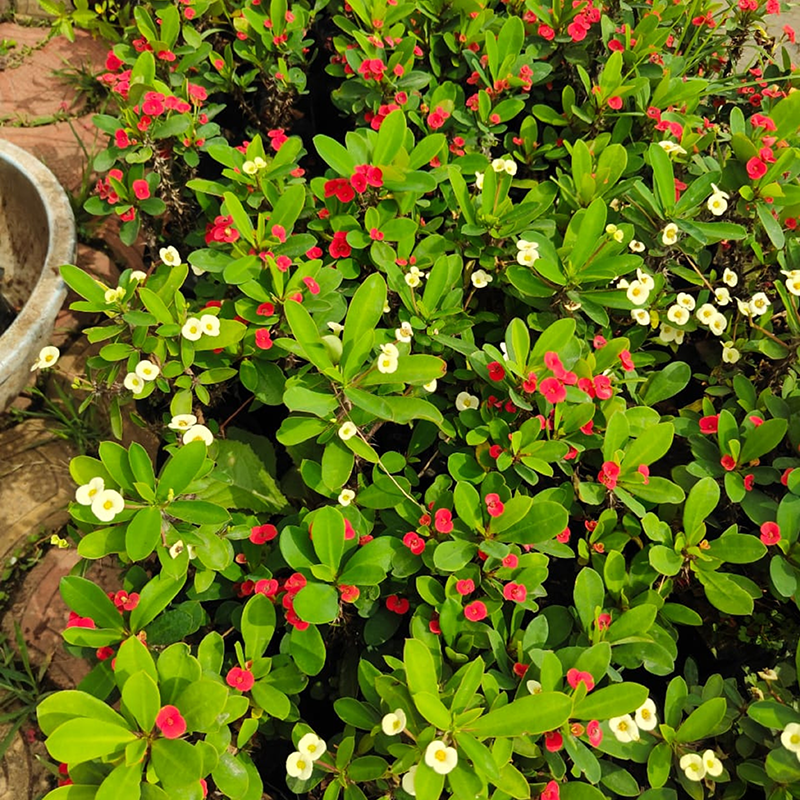 Its vibrant red, pink, or yellow flowers add a splash of color to balconies, gardens, or sunny windowsills. The thick, thorny stems store water, making it highly drought-tolerant and ideal for warm, dry climates.