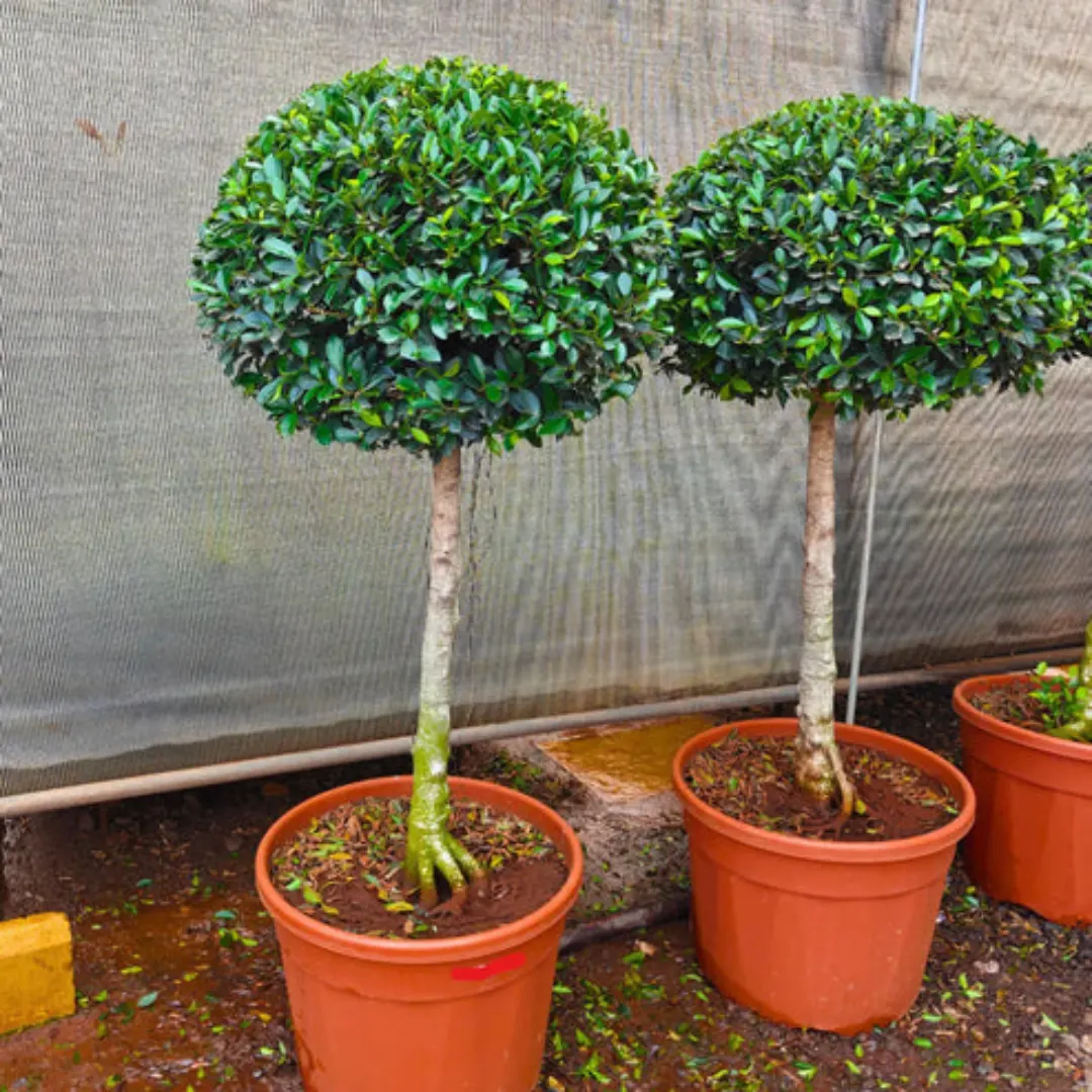 Ficus Microcarpa “Single Ball” Plant is a beautifully shaped ornamental plant, trained into a neat spherical canopy that adds instant elegance to any space. It belongs to the Moraceae family and is native to South and Southeast Asia, where it grows naturally in tropical climates. This plant is highly versatile and can be grown both indoors and outdoors—indoors as a decorative floor plant and outdoors in gardens, balconies, or landscapes. Its main specialty lies in its low maintenance nature, air-purifying ability, and sculpted topiary form, which makes it perfect for modern homes, offices, hotels, and commercial spaces. With glossy green leaves and strong adaptability, it is a long-lasting and visually appealing choice.