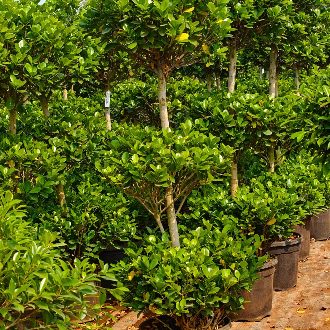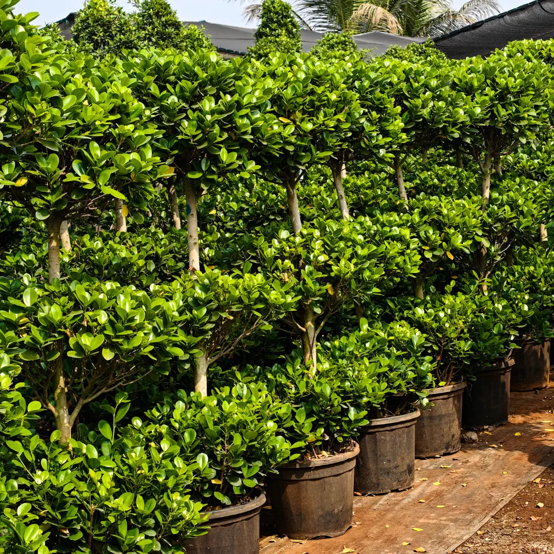 Ficus Moclame “3 Step” Topiary Plant is a premium ornamental plant carefully trained into three elegant, round tiers, making it a perfect statement piece for modern landscapes and interiors. This plant belongs to the Ficus genus, native to tropical regions of Southeast Asia and India, where it thrives in warm and humid climates. Ficus Moclame can be grown both indoors and outdoors—indoors in bright, indirect light, and outdoors in semi-shaded locations. Its biggest speciality lies in its dense, glossy green foliage, excellent air-purifying ability, and low maintenance nature. The structured topiary form adds instant sophistication to homes, offices, hotels, and garden entrances, making it a favorite for luxury décor and landscaping projects.