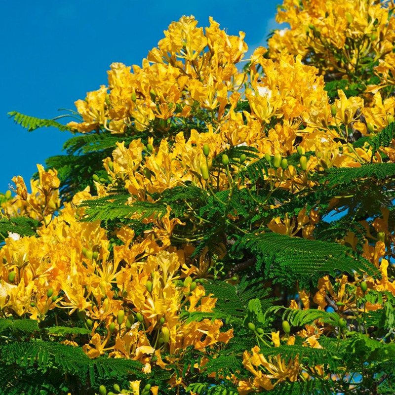 1. Location: Plant your Yellow Flametree in a sunny spot where it can receive full sunlight for most of the day. These trees love the sun and need it to bloom prolifically.
