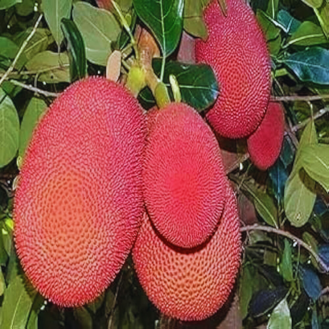 The Red Jackfruit is a unique and ornamental variety of the common jackfruit tree, valued for its attractive foliage, manageable size, and delicious fruits with a slightly reddish hue. It is ideal for home gardens, orchards, and even large pots for urban gardening.