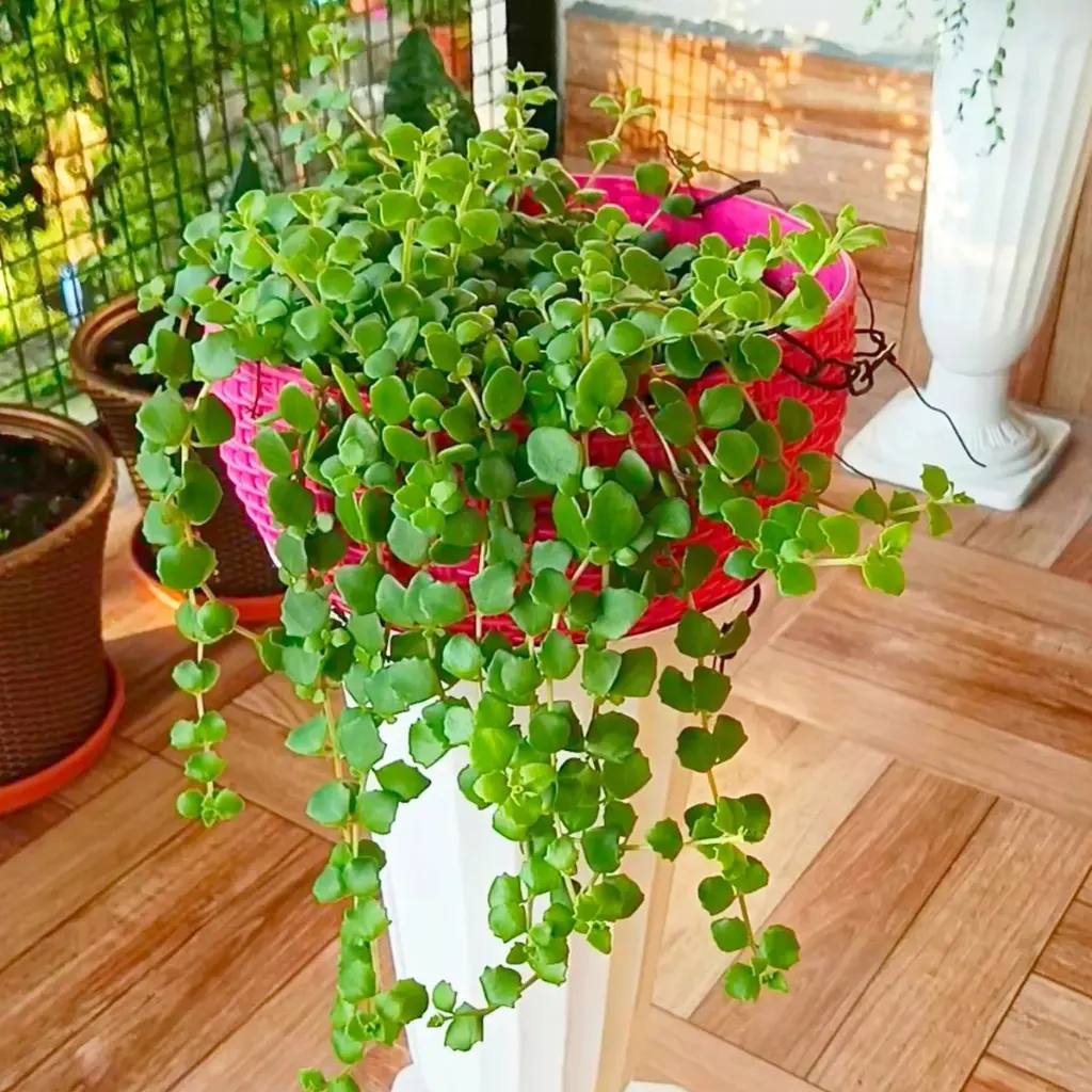 The Tangled Heart Plant, scientifically known as Ceropegia woodii, is a beautiful South African succulent. Its delicate beauty and distinct growth pattern make it a popular choice among plant enthusiasts. This trailing succulent comes from the Apocynaceae family and is known as the “String of Hearts” because of its slender, heart-shaped leaves. This lovely plant is characterized by trailing vines studded with small, silver-striped leaves, resulting in an exquisite waterfall of greens. Its hardiness and low maintenance requirements make it an excellent choice for both novice and seasoned plant enthusiasts. One of the most impressive characteristics of the Tangled Heart Plant is its ability to retain water in its leaves, allowing it to flourish in a variety of light situations. This plant’s natural elegance lends a bit of whimsy to any environment, whether cascading from a hanging planter or decorating a shelf, making it a treasured addition to any indoor garden.