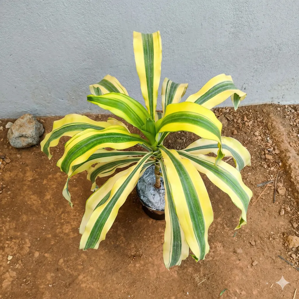 • Attractive Variegated Leaves : Long, glossy leaves with bright yellow and green stripes make it a visually appealing plant.